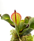 Aspetto: Pianta di grande eleganza, caratterizzata da ascidi slanciati dal colore verde brillante con sfumature rosso intenso.