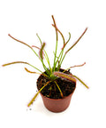 Forma una rosetta allungata composta da foglie nastriformi e flessibili, ricoperte da tentacoli ghiandolari che secernono un muco appiccicoso per intrappolare le prede. Una volta catturato l’insetto, la foglia tende ad arrotolarsi su se stessa per favorire la digestione.