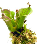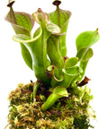 • Aspetto: Pianta di grande eleganza, caratterizzata da ascidi slanciati dal colore verde brillante con sfumature rosso intenso.